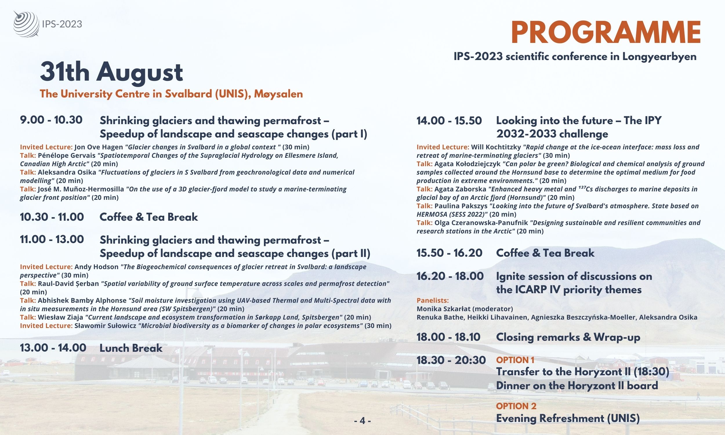 -> 30-31 August: IPS-2023 scientific conference sessions in Longyearbyen
